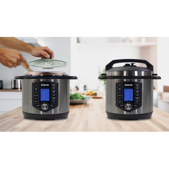 Salente Cuco II spojuje tři způsoby přípravy pokrmů v jednom moderním zařízení. Hrnec můžete použít jako tlakový, pomalý nebo pro restování. Režimy se liší podle použitých pokliček. V jednom hrnci si snadno a rychle připravíte vynikající guláš, zeleninu v páře nebo domácí poctivý vývar.
