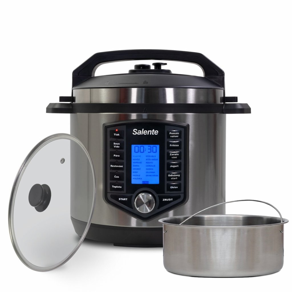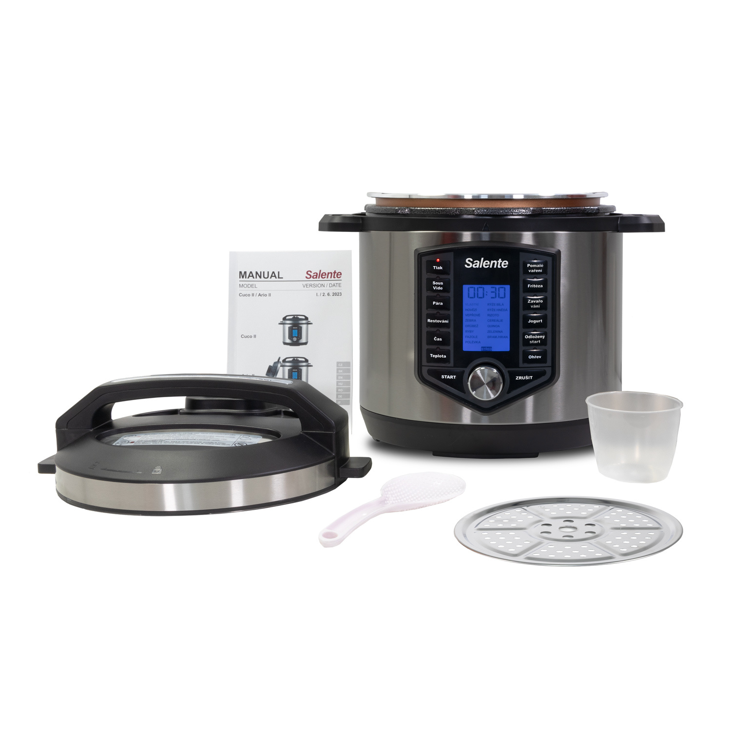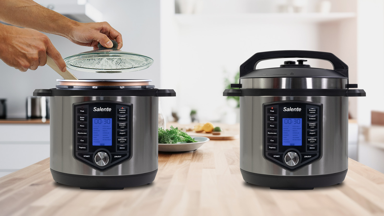 Salente Cuco II spojuje tři způsoby přípravy pokrmů v jednom moderním zařízení. Hrnec můžete použít jako tlakový, pomalý nebo pro restování. Režimy se liší podle použitých pokliček. V jednom hrnci si snadno a rychle připravíte vynikající guláš, zeleninu v páře nebo domácí poctivý vývar.