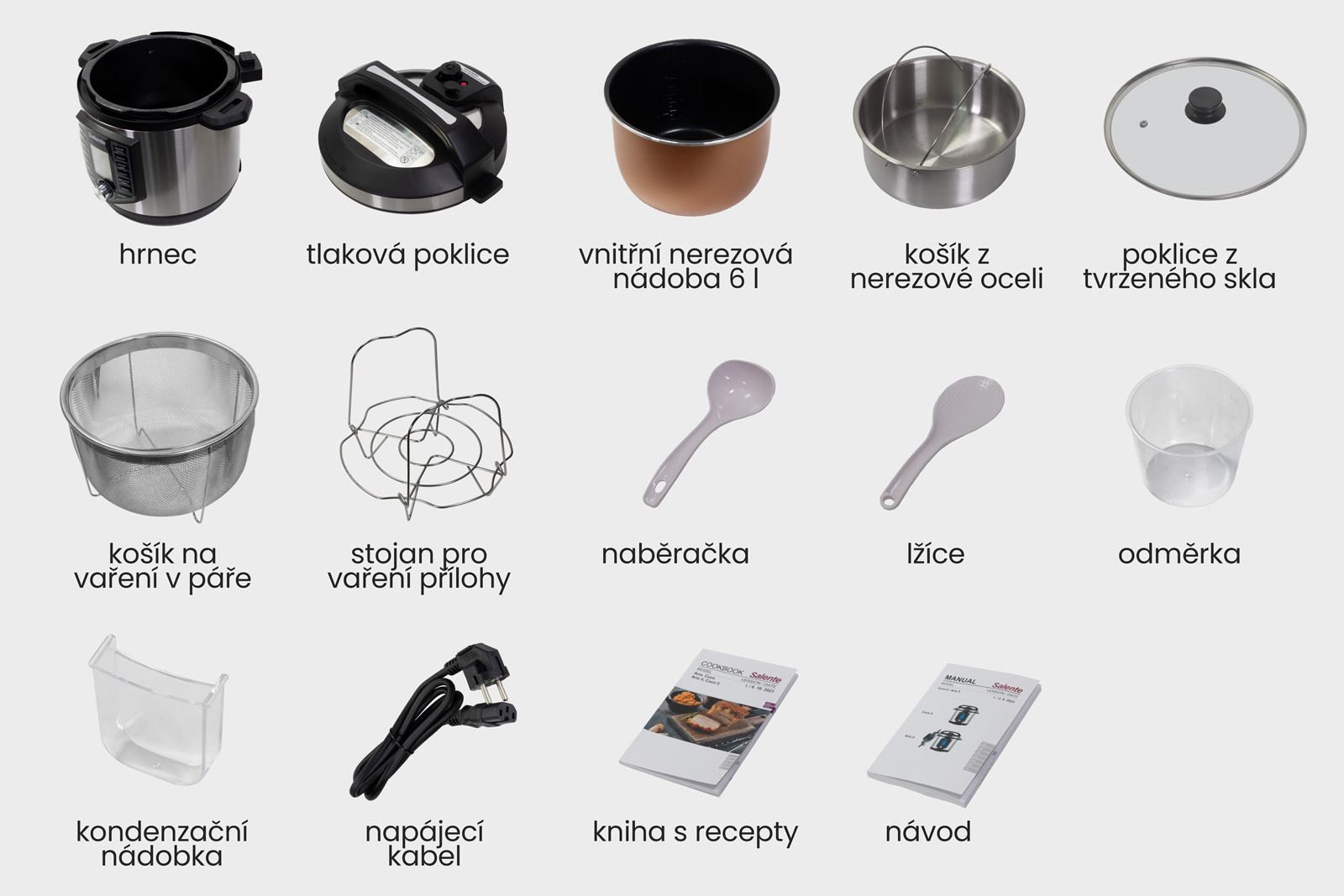 • Nádoba o objemu 6l - umožňuje vaření pro celou rodinu (2 - 6 osob), vhodná do myčky