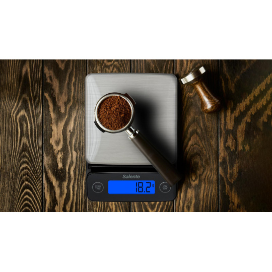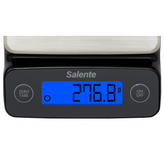Váha Salente DiamondCook je unikátní kombinací klasické kuchyňské váhy s váživostí do 3 kg a přesné desetinné váhy schopné navážit např. 5 gramů kávy, 8 gramů droždí nebo přesnou dávku léčiv s přesností na 0,1 gramu.