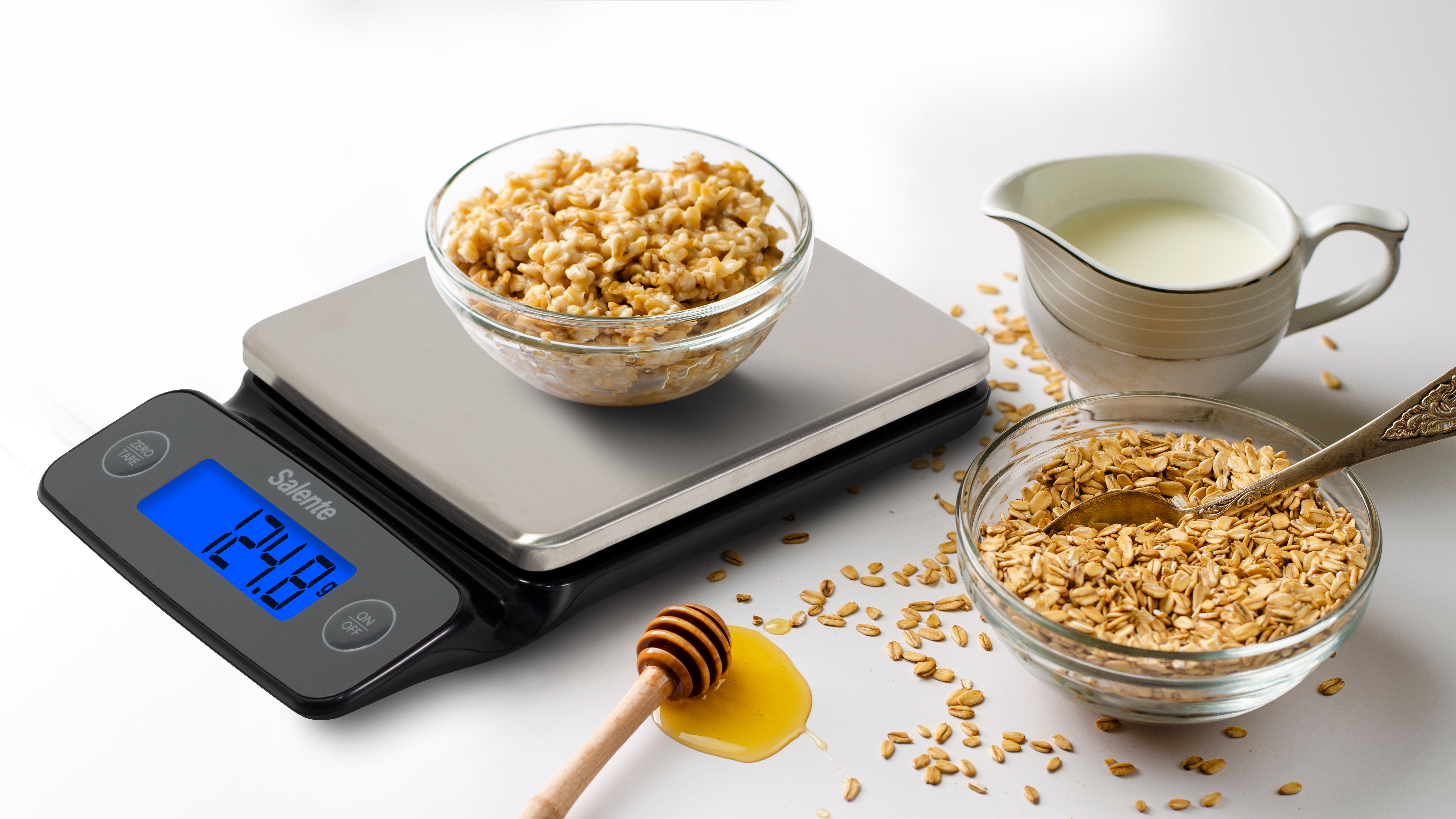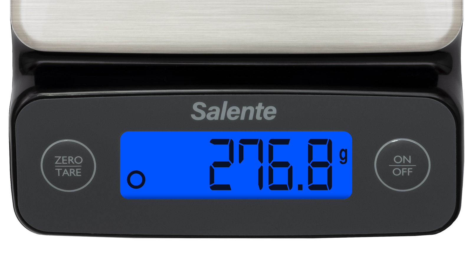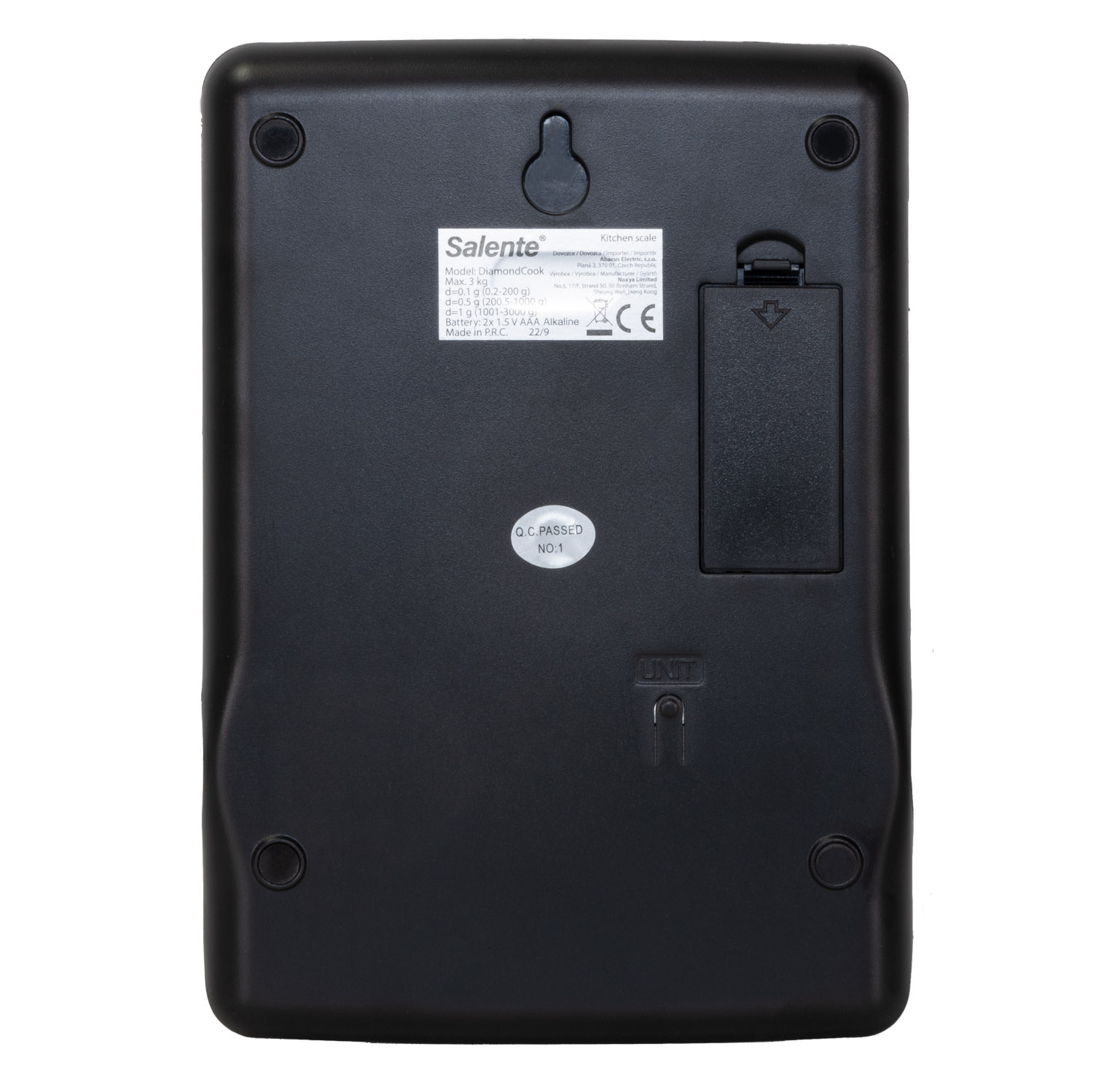Váha Salente DiamondCook je unikátní kombinací klasické kuchyňské váhy s váživostí do 3 kg a přesné desetinné váhy schopné navážit např. 5 gramů kávy, 8 gramů droždí nebo přesnou dávku léčiv s přesností na 0,1 gramu.
