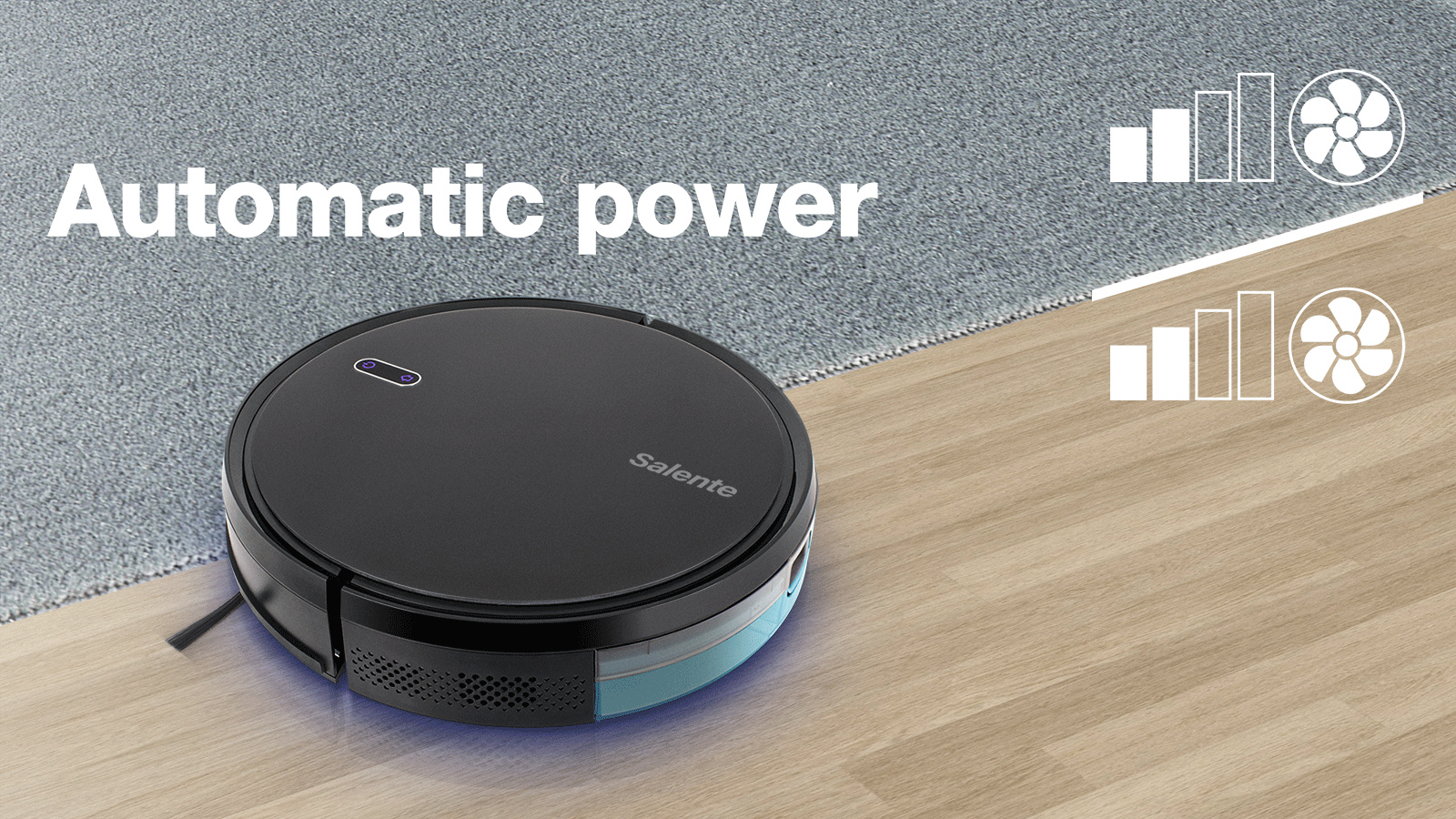 Vysavač automaticky detekuje typ podlahy a přizpůsobuje mu sací výkon. Po najetí na koberec se výkon zvýší pro účinnější úklid a po návratu na dlažbu nebo plovoucí podlahu se výkon vrátí na původní hodnotu.