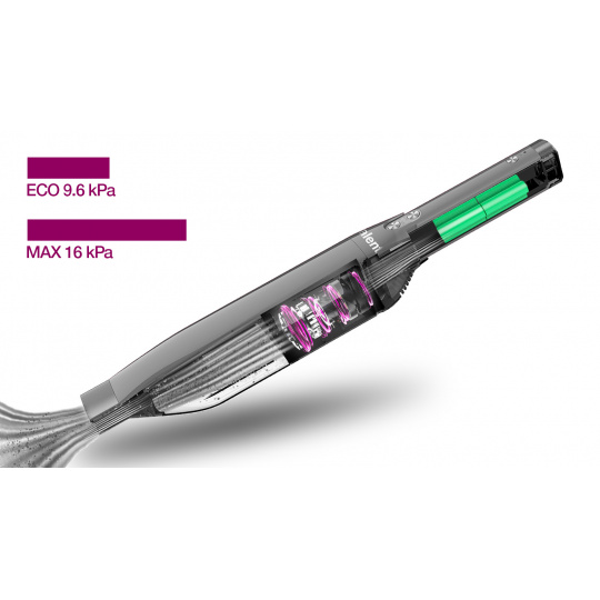 Vysavač Salente HandyPlus disponuje vysokým sacím výkonem, který v případě režimu ECO nabízí 9,6 kPa a v režimu MAX dokonce 16 kPa. Snadno tak vysajete všechny nečistoty ve vaší domácnosti nebo kanceláři.