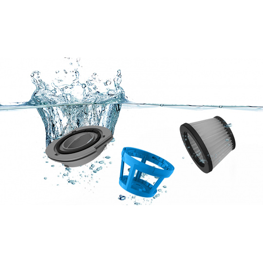 Dvoustupňová filtrace s omyvatelným HEPA filtrem pomáhá zachytit jemný prach, alergenní roztoče či zvířecí alergeny. Zabraňuje také úniku drobných částeček prachu zpět do vzduchu. Údržba vysavače je velmi jednoduchá a k jeho provozu nepotřebujete papírové výměnné sáčky. HEPA filtr je omyvatelný a lze ho vyčistit a používat opakovaně.