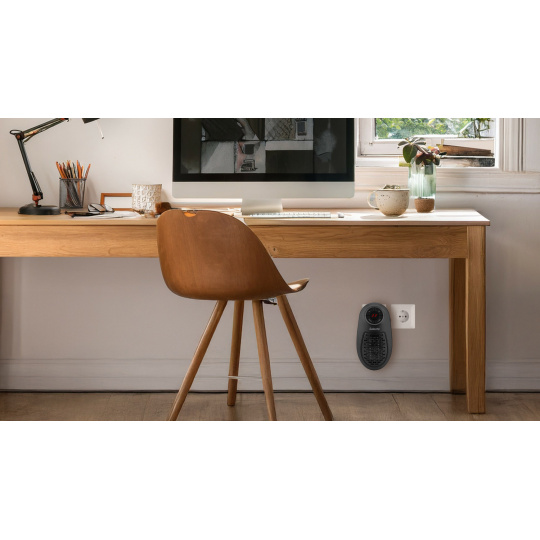 Chcete si pomocí teplovzdušného ventilátoru přitopit, ale zásuvka je uvězněná mezi skříněmi nebo ji okupuje armáda další elektroniky? Žádný problém. Teplovzdušný ventilátor Salente HotHeat využívá otočnou 230V vidlici a dá se připojit do elektřiny ve vertikální i horizontální pozici. S noblesou vám tak poslouží i v koupelně, kde jsou zásuvky často umístěny ve specifických pozicích, nebo v kanceláři s přeplněnými prodlužovacími kabely a rozdvojkami.