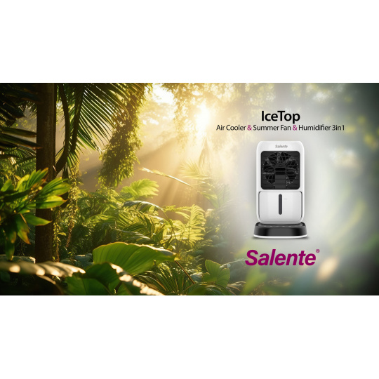 Multifunkční zařízení Salente IceTop plní funkci malého stolního ochlazovače vzduchu, který vám v horkých letních dnech nebo teplých prostorách bez možnosti klimatizace zpříjemní práci i soukromí. Současně plní funkci zvlhčovače a nedochází tak při jeho provozu k vysušování vzduchu jako je tomu u standardních klimatizací. Při provozu bez naplněné vodní nádržky plní funkci klasického stolního letního ventilátoru. Na jedno naplnění vodní nádržky vydrží v provozu 6 hodin.