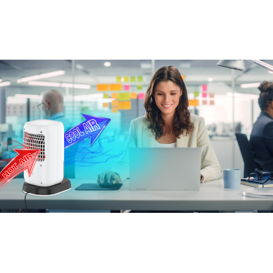 Díky svým kompaktním rozměrům nepřesahujícím 24 cm je předurčen k použití zejména v kancelářích i domácnostech jako individuální zařízení k ochlazení vzduchu s fokusem na konkrétní osobu vytvářející osobní komfortní zónu. Můžete jej mít na stole vedle telefonu nebo počítače a stejně tak na kuchyňské lince při vaření nebo při domácím cvičení.
