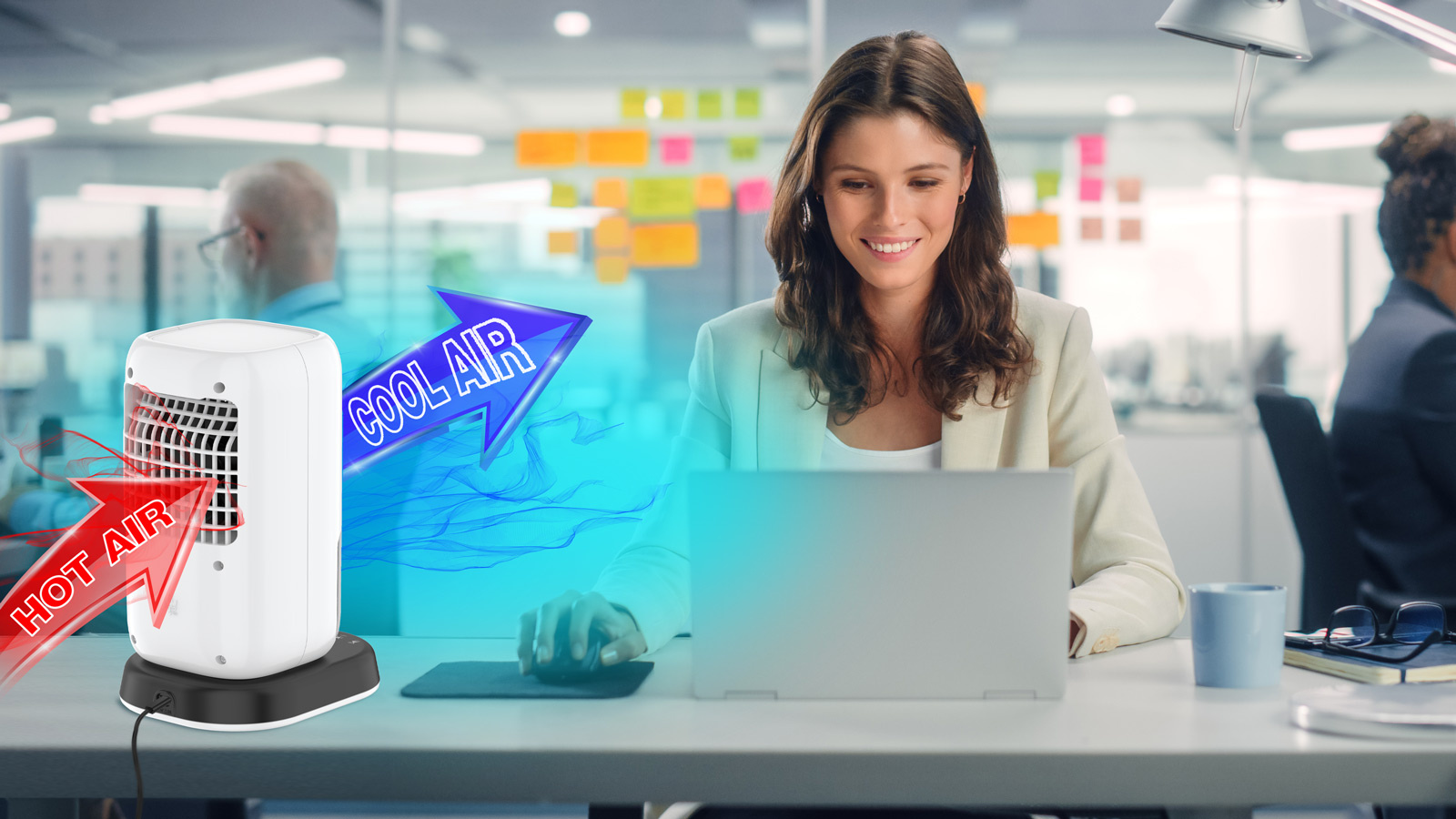 Díky svým kompaktním rozměrům nepřesahujícím 24 cm je předurčen k použití zejména v kancelářích i domácnostech jako individuální zařízení k ochlazení vzduchu s fokusem na konkrétní osobu vytvářející osobní komfortní zónu. Můžete jej mít na stole vedle telefonu nebo počítače a stejně tak na kuchyňské lince při vaření nebo při domácím cvičení.