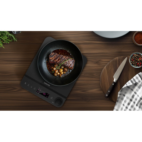 Každý pokrm vyžaduje jinou péči – někdy potřebujete jen jemné zahřívání, jindy pořádný žár. Salente InductPro1 vám proto nabízí 10 úrovní teploty (v rozsahu 60 až 240 °C) a 10 úrovní výkonu (až do 1800 W). A pokud zrovna spěcháte, můžete se spolehnout na funkci Boost, která na 30 sekund zapne maximální výkon.