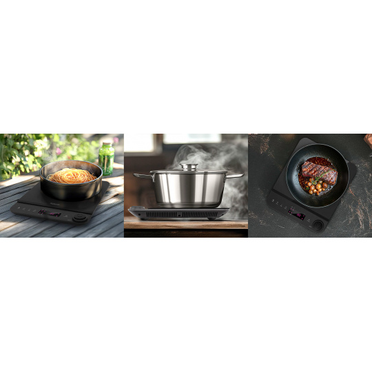 Indukční vařič Salente InductPro1 je perfektní volbou pro všechny, kteří chtějí vařit efektivně, úsporně a bezpečně. Je lehký, kompaktní a snadno přenosný, takže se hodí nejen do bytu, ale i na chalupu, do kanceláře či studentského bytu. Připojte ho k zásuvce, postavte na něj svůj oblíbený hrnec a nechte se unést chutěmi, které vytvoříte – snadno, rychle, úsporně a hlavně s radostí.