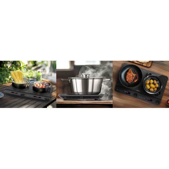 Indukční vařič Salente InductPro2 je perfektní volbou pro všechny, kteří chtějí vařit efektivně, úsporně a bezpečně. Je lehký, kompaktní a snadno přenosný, takže se hodí nejen do bytu, ale i na chalupu, do kanceláře či studentského bytu. Připojte ho k zásuvce, postavte na něj svůj oblíbený hrnec a nechte se unést chutěmi, které vytvoříte – snadno, rychle, úsporně a hlavně s radostí.