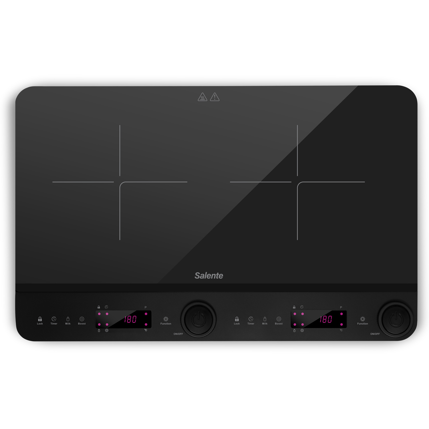 Každý pokrm vyžaduje jinou péči – někdy potřebujete jen jemné zahřívání, jindy pořádný žár. Obě plotýnky indukčního vařiče Salente InductPro2 vám proto nabízí 10 úrovní teploty (v rozsahu 60 až 240 °C) a 10 úrovní výkonu (až do 1300 W, resp. 1800 W). A pokud zrovna spěcháte, můžete se spolehnout na funkci Boost, která na 30 sekund zapne maximální výkon. Spolehlivý provoz tohoto kompaktního kuchyňského spotřebiče zajišťuje i autodiagnostika (monitorující případné problémy s indikací na displeji) nebo fakt, že ovládání i vaření je zde řízeno špičkovým mikroprocesorem.