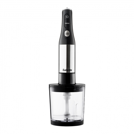 Salente Mixxo přichází do vaší kuchyně i s bohatým příslušenstvím: využívat můžete šlehací nástavec s nerezovou metličkou, mixovací nádobku o objemu 600 ml (s odměrnými ryskami po 100 ml) a taky sekáček s objemem 500 ml, který je vybaven nerezovými noži a silikonovou protiskluzovou podložkou. Pořízením tohoto všestranného mixéru zkrátka získáte kompletní vybavení, které posune vaše gastronomické kouzlení o úroveň výš.