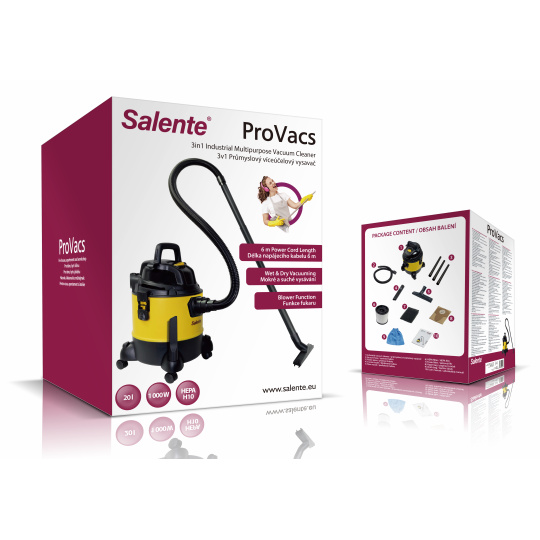 Salente ProVacs, průmyslový víceúčelový vysavač a fukar 4v1, žlutý