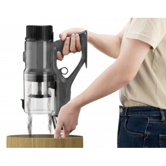 Údržba vysavače je velmi jednoduchá a k jeho provozu nepotřebujete papírové výměnné sáčky. Nečistoty jsou vysávány do nádobky o obsahu 0,7 litru. Nádobka je navíc doplněna o zpětnou klapku, která zabraňuje vypadávání nečistot při manipulaci s vysavačem. Po ukončení úklidu jednoduše uvolníte západku na nádobce a veškerý obsah vysypete. Filtr je omyvatelný a lze ho vyčistit a používat opakovaně.