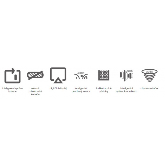 Soustava čidel ve spojení s barevným digitálním displejem informuje uživatele o všem podstatném. Zobrazí stav baterie při vysávání nebo nabíjení, zvolený pracovní režim, potřebu vyprázdnit nádobu na prach nebo zablokovaný rotační kartáč.