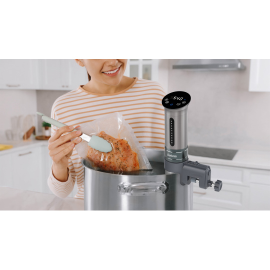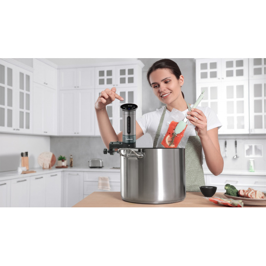 Sous Vide vařič Salente SuChef přináší do kuchyně jednu z nejmodernějších metod vaření profesionálních kuchařů z michelinských restaurací – pomalé vaření zavakuovaných ingrediencí ve vodní lázni při konstantní nízké teplotě. Díky této metodě ingredience naztrácejí svou hmotnost, zachovávají si šťavnatost, texturu, důležité vitamíny, minerály, živiny i nutriční hodnoty. Oproti klasickým metodám příprav si udrží i výraznější a lepší chuť, vůni i barvu. Velmi důležitým benefitem je skutečnost, že pokrm nelze ani připálit ani rozvařit a jedná se o zdravou přípravu bez tuků a olejů.