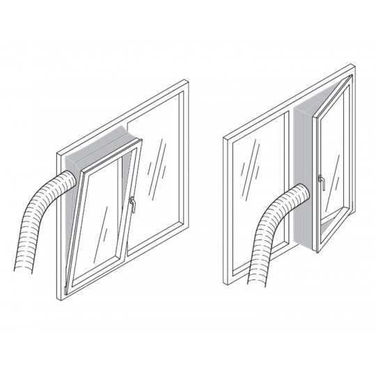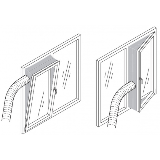 • Odvodu teplého vzduchu z místnosti přes dodávanou flexibilní hadici a těsnění do okna