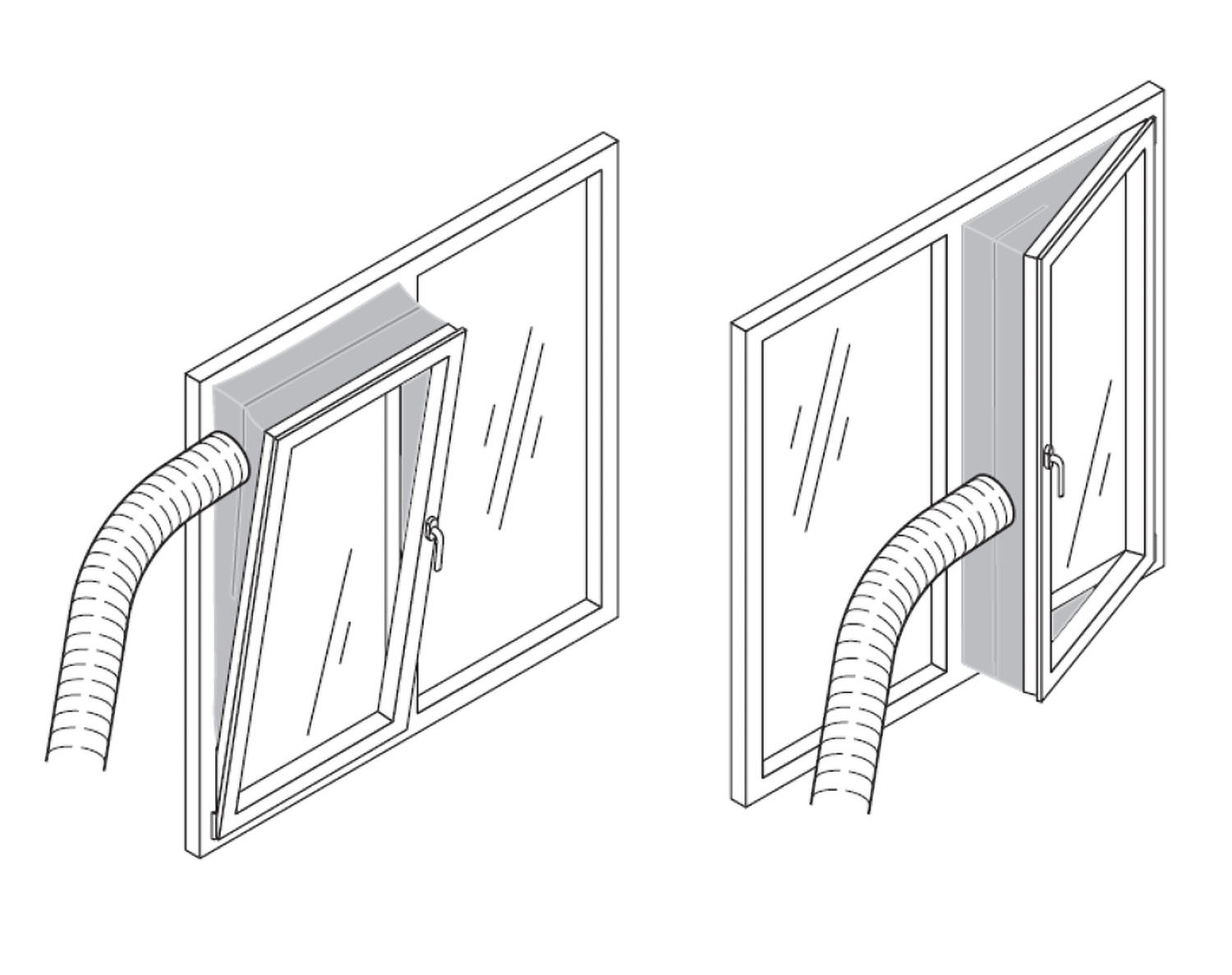 • Odvodu teplého vzduchu z místnosti přes dodávanou flexibilní hadici a těsnění do okna