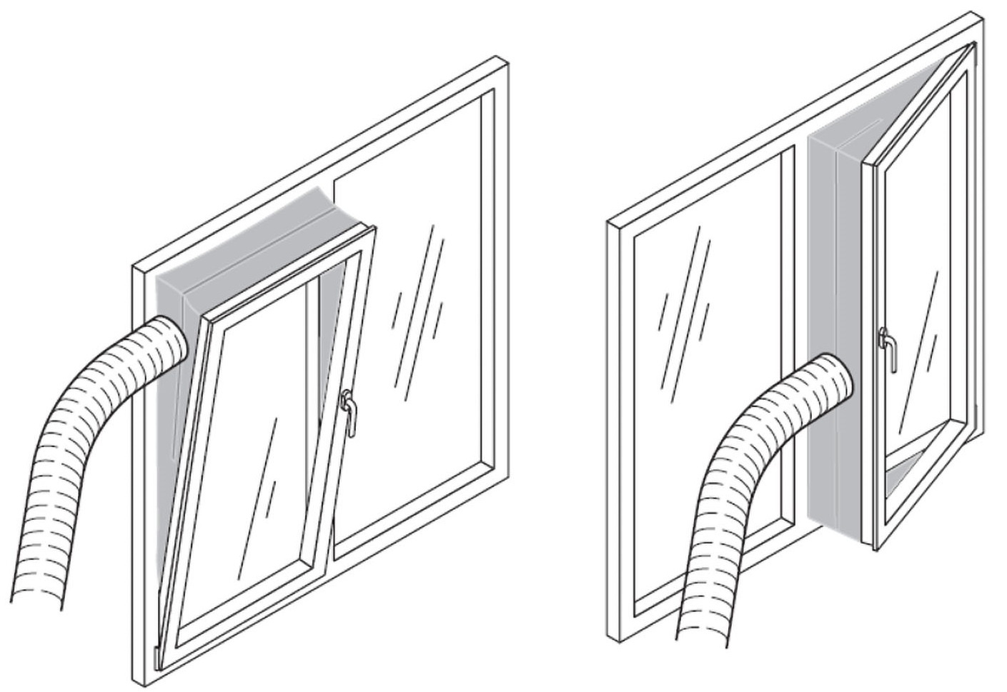 • Odvodu teplého vzduchu z místnosti přes dodávanou flexibilní hadici a těsnění do okna