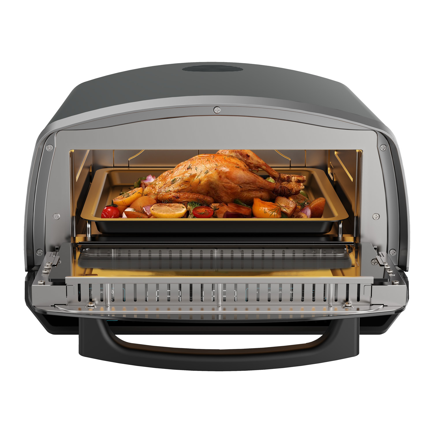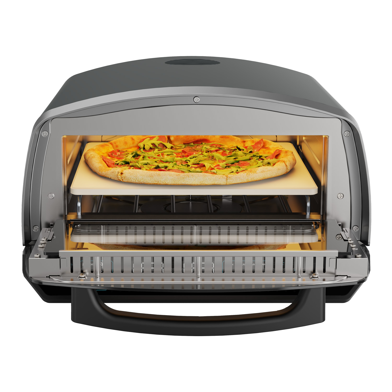 Pizza pec Salente Vulcano není jen mistr na pizzu – díky vestavěné funkci grilu ji využijete po celý rok na nespočet dalších způsobů. Nabízí režimy Broil, Roast, Bake a Grill, takže si snadno připravíte nejen dokonale propečenou pizzu, ale i šťavnaté maso, dozlatova zapečenou zeleninu, křupavé toasty nebo domácí pečivo.