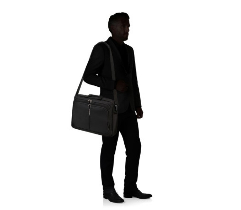 Brašna na notebook Samsonite Briefcase 17,3" z kolekce Guardit 3.0. Materiál: Recyclex - vyrobeno z recyklovaného PET Popis: voděodolný prostor pro notebook: 43,9 cm / 17,3" ( 42,2 x 28,7 x 3,3 cm) přihrádka na tablet: 26,7 cm / 10,5" ( 26,6 x 18,3 x 1,5 cm) kapsa na zip z přední strany odnímatelný nastavitelný ramenní popruh smart sleeve - tzv. návlekový pásek sloužící ke snadnému přichycení na rukojeť kufru organizér rozměr: 43 x 32 x 10 cm objem:18,5 l váha 0,6 kg Záruka 2 roky