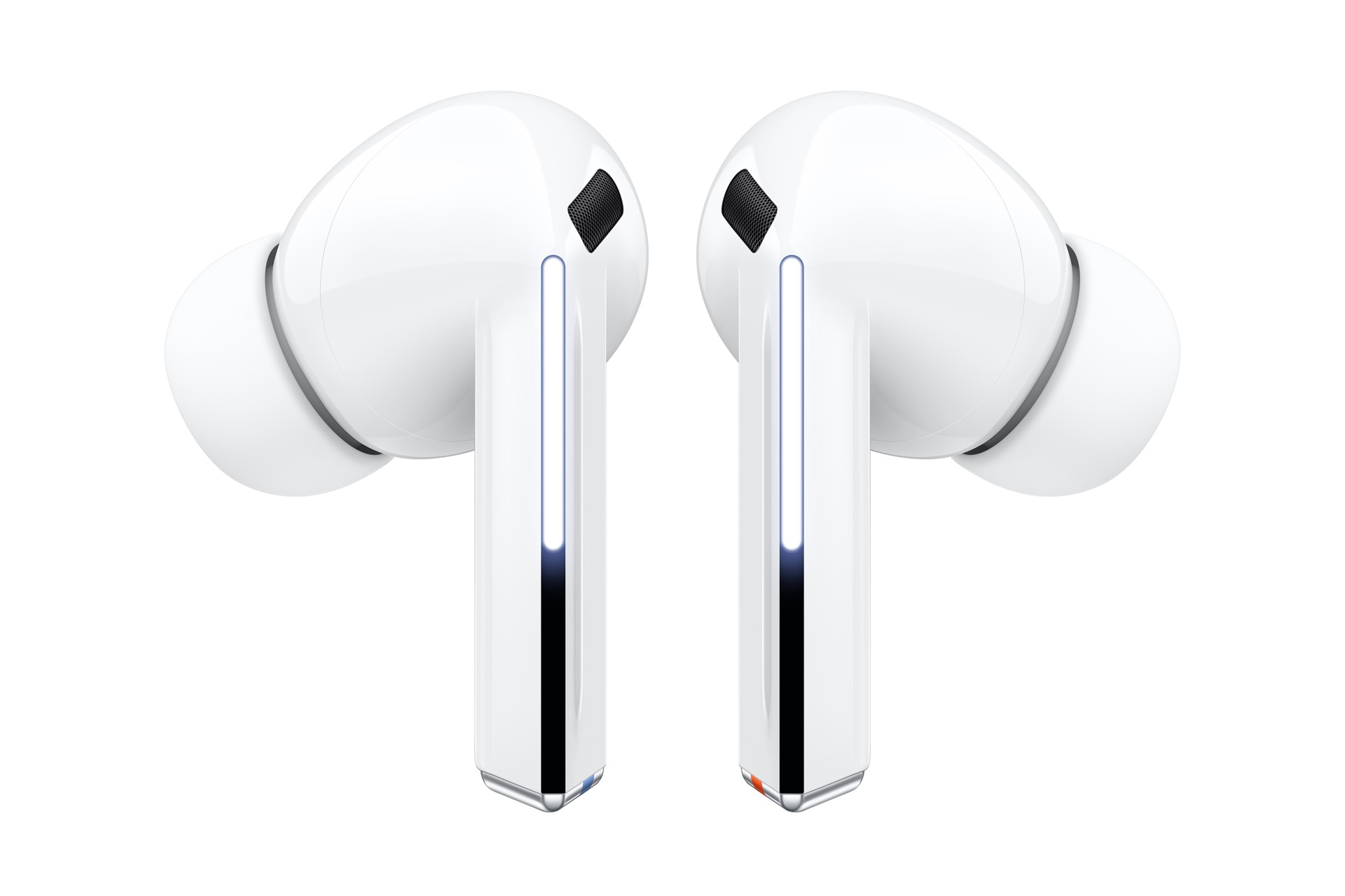 Vyzkoušej náš úplně nový design navržený pro optimální zvuk. Důmyslně vylepšené Galaxy Buds3 Pro se pyšní malou šikmou hlavou pro pohodlné nošení, které zpříjemní tvůj celkový zvukový zážitek, zatímco světelné indikátory ti umožní vyjádřit své pravé stylové já. Design bočnic zvýrazňuje elegantní pouzdro s průhledným krytem a jemným zaobleným tvarem, vybavené rozhraním USB-C a funkcí rychlého nabíjení.