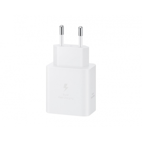 Samsung 45W nabíječka s USB-C portem * technologie Smart IC * bezpečné napájení zařízení (ochrana před přepětím, přehřátím a zkratem) * všestranná kompatibilita Specifikace: Kompatibilita: * super rychlé nabíjení: Galaxy S10 5G, Galaxy Note10, Galaxy Z Fold2, Galaxy Z Flip3 a novější / Galaxy A90 5G, A80, A70, A52, A33, A23, A05, A15 a novější / Galaxy M31s, M51, M62, M23 , M53, M14 a novější/ Galaxy Tab S7 a novější * super rychlé nabíjení 2.0: Galaxy Note 10+, Galaxy S20 Ultra, Galaxy S22+, Galaxy S22 Ultra, Galaxy S23+, Galaxy S23 Ultra, Galaxy S24+, Galaxy S24 Ultra, Galaxy S25+, Galaxy S25 Ultra / Galaxy A36, A56 a novější / Galaxy Tab S7 a novější Funkce: * super rychlé nabíjení 2.0, max. 45W, PD 3,0 PDO/PPS max. 45W, nízká spotřeba energie v pohotovostním režimu (<5mW) Rozhraní: * USB-C * kabel USB-C na USB-C 5A (1,8 m) Napájení: * napájení na vstupu: 100 - 240 V * napětí na výstupu (max. standard. nabíjení): 5V * napětí na výstupu (max. rychlé nabíjení): PDO : 9 V, 15 V, 20 V / PPS : 5,0-20,0 V * proud na výstupu (max. standard.nabíjení): 3A * proud na výstupu (max. rychlé nabíjení): PDO : 3 A(9 V, 15 V), 2,25 A (20 V) / PPS : 2,25 A (5,0-20,0 V) Materiál produktu: recyklovaný materiál (min. 3,5% recyklovaného plastu) Barva: bílá Rozměry: 43,5 × 81,8 × 28 mm Hmotnost: 92,5 g Obsah balení: * napájecí adaptér * kabel USB-C na USB-C (5A) - 1,8 m * uživatelská příručka Záruka: 24 měs.