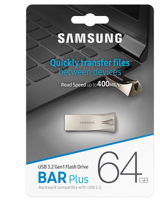 Datové úložiště, které se dá snadno přenášet. USB flash disk Samsung USB 3.2 Gen1 64GB Bar Plus Champagne silver je nejvhodnějším prostředkem k zálohování a přenášení dat mezi vámi vybranými zařízeními. Jistě budete potěšeni obsahem uložiště 64 GB. K notebooku či PC se připojuje prostřednictvím USB 3,2 Gen 1 (USB 3,0).