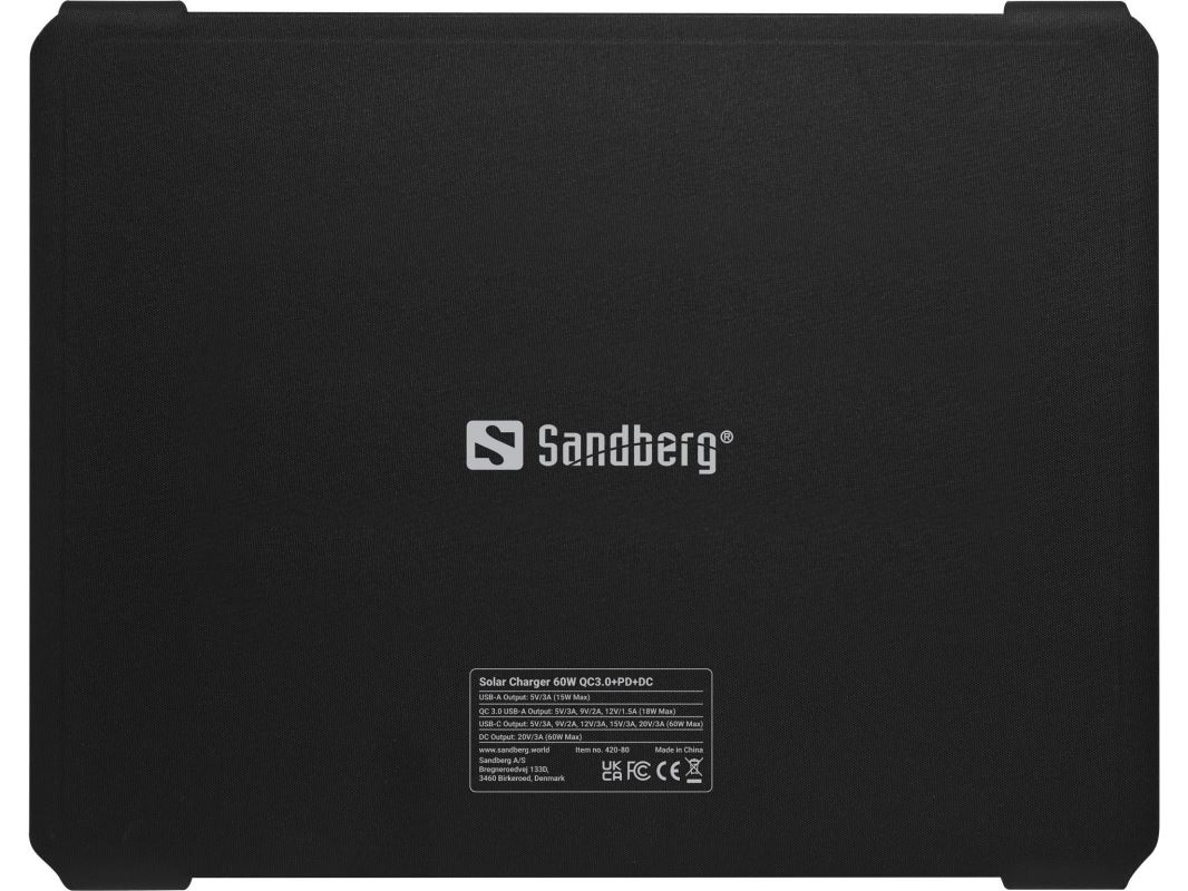 Skládací solární panel Sandberg se skládá ze 4 monokrystalických solárních panelů, což vám poskytne kombinovaný výkon až 60 W.