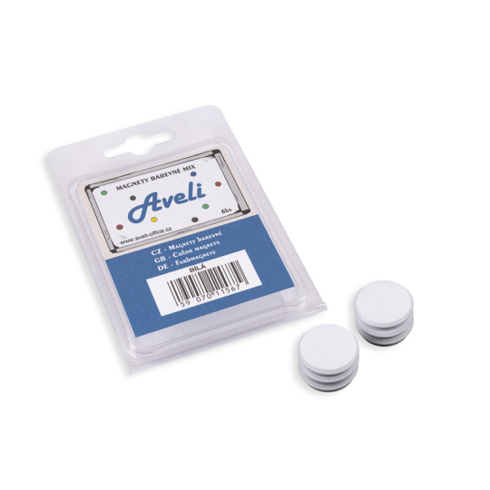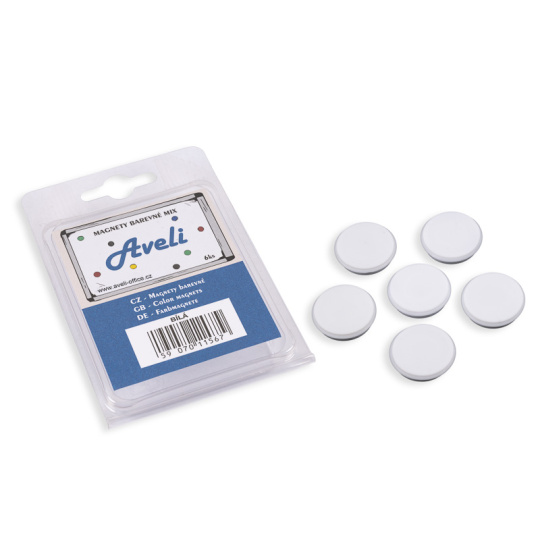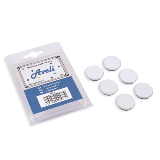 Magnety pro tabule Aveli v barevných rozlišeních. Balení 6 kusů magnetů v bílé barvě
