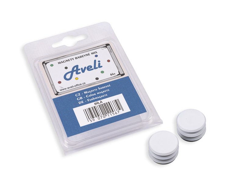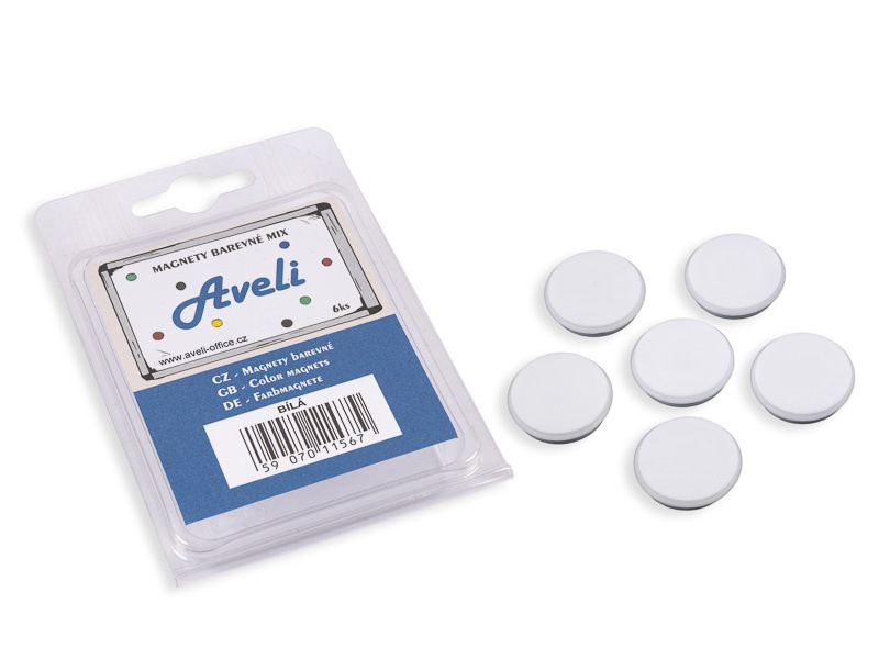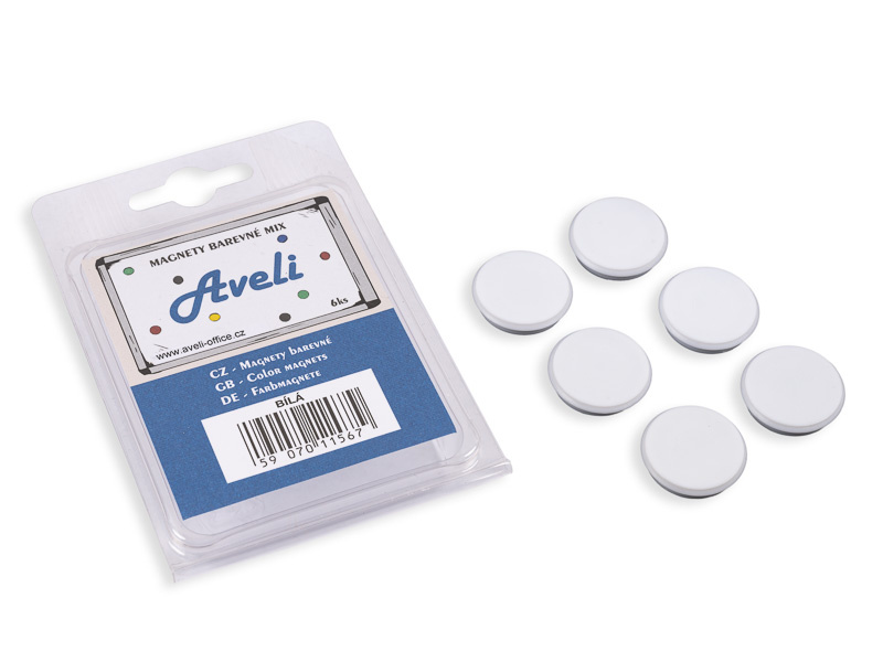 Magnety pro tabule Aveli v barevných rozlišeních. Balení 6 kusů magnetů v bílé barvě