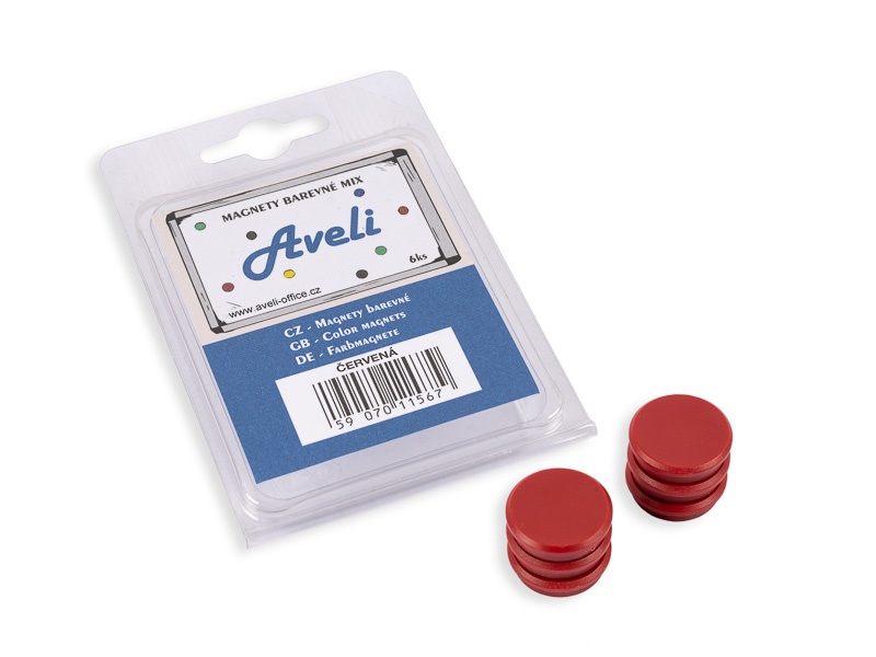 Magnety pro tabule Aveli v barevných rozlišeních. Balení 6 kusů magnetů v červené barvě.