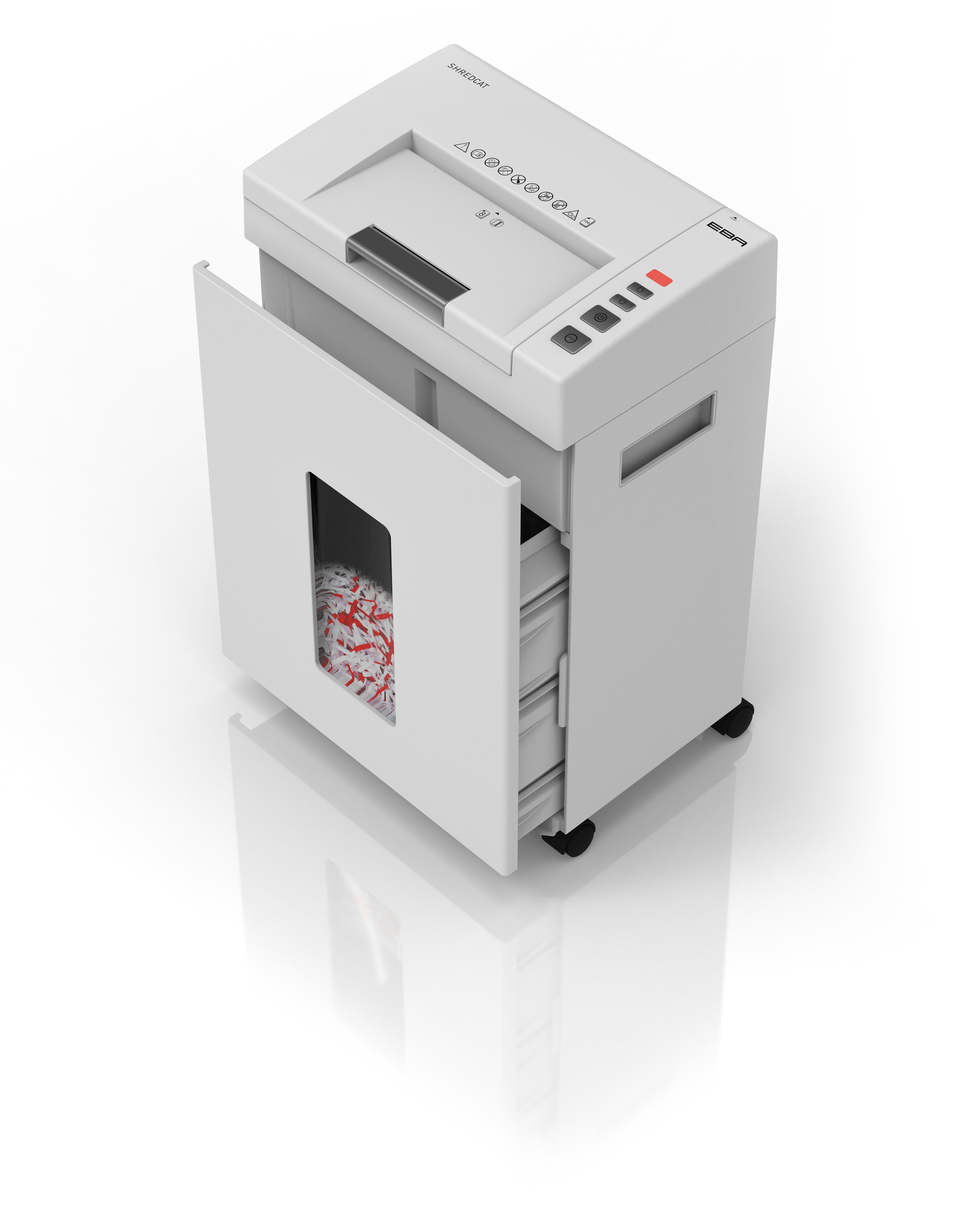 • Vyjímatelná nádoba na skartování s velkým průhledovým okénkem v koši pro kontrolu zaplnění.