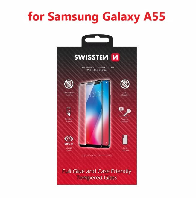 SWISSTEN SKLO FULL GLUE, COLOR FRAME, CASE FRIENDLY PRO SAMSUNG GALAXY A55 ČERNÉ