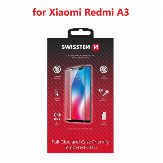 SWISSTEN SKLO FULL GLUE, COLOR FRAME, CASE FRIENDLY PRO XIAOMI REDMI A3 ČERNÉ