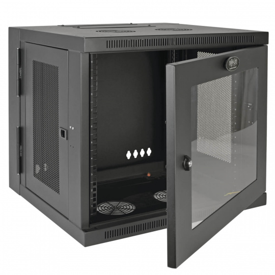 Skříň SmartRack 10U, Š=600mm, Hl=550mm, hloubka pro přepínače, prosklené dveře, montáž na stěnu