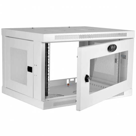 Skříň SmartRack 6U, Š=600mm, Hl=450mm, hloubka pro přepínače, prosklené dveře, montáž na stěnu, bílá