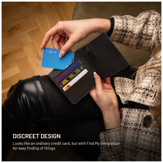 Lokátor FIXED Tag Card s podporou systému iOS je spolehlivým pomocníkem pro sledování vašich osobních věcí. Díky lokátoru s certifikací Apple Find My kartu snadno spárujete s aplikací Najít, kde můžete okamžitě sledovat její aktuální polohu a případně ji vyhledat pomocí zvukové signalizace. Funkce zvukové signalizace vás zároveň upozorní, pokud se od lokátoru vzdálíte. Již se tak nestane, že byste zapomněli peněženku doma či v restauraci. S rozměry kreditní karty a tloušťkou pouhých 1,7mm perfektně zapadne do každé peněženky, kapsy batohu nebo kamkoliv, kam by klasický lokátor nebylo možné přichytit či vložit. Zvýšenou odolnost lokátoru zajišťuje jednolité lisované tělo a standard IP67, díky kterému karta odolává vniknutí prachu a vody. Karta je plně kompatibilní se všemi typy bezdrátových nabíječek, včetně těch MagSafe a na jedno nabití vydrží až 3 měsíce. Když kapacita klesne, LED indikátor vás včas upozorní, aby byl lokátor vždy plně připraven. Součástí karty je praktický otvor pro uchycení poutka. S lokalizační kartou FIXED Tag Card budete mít své cennosti vždy pod kontrolou.