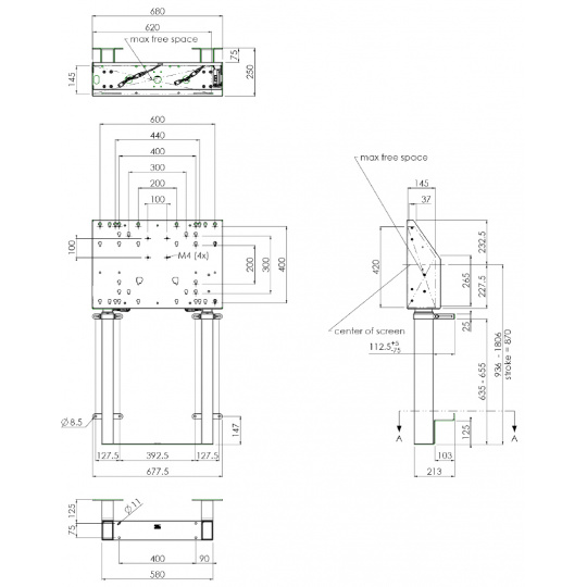 Držák je osazen uchyceními VESA až do 600 x 400 mm, pro případ montáže větších displejů je přibalen i adaptér zvyšující VESA až na 800 x 600 mm, takže bude vyhovovat i těm největším obrazovkám. V kabinetu za displejem je prostor pro umístění PC, přehrávače, tenkého klienta apod. Pro montáž těchto malých zařízení je stojan vybaven i rozhraním VESA 75/100 a možností uzamčení s pomocí dokoupitelného krytu.