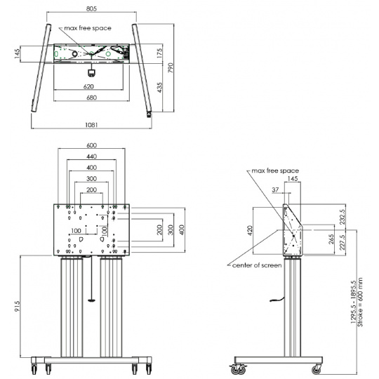 Stojan s elektrickým zdvihem využijete především v oblasti vzdělávání, digitální tvorby nebo produktového a firemního marketingu. Model 062.7105 nabízí snadnou změnu výšky stojanu až o 600 mm, takže střed obrazovky se může pohybovat v rozpětí 1 295,5 – 1 895,5 mm.