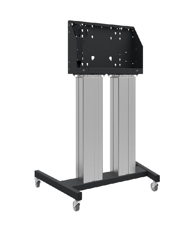 Stojan je vhodný i do prostor se zvýšeným pohybem osob a k montáži dotykových výukových displejů. Systém stojanu, displeje a přídavné elektroniky je umístěn na podstavci s kolečky, který nebrání přístupu až k displeji. Volitelné příslušenství (viz níže) vám umožní vše nakonfigurovat přesně podle vašich potřeb. Drátový dálkový ovladač je vhodné připevnit přímo k displeji, čímž získáte plnou kontrolu nad pohybem displeje.