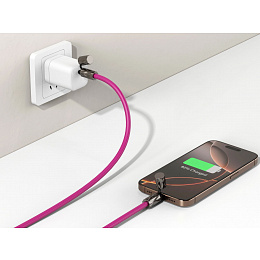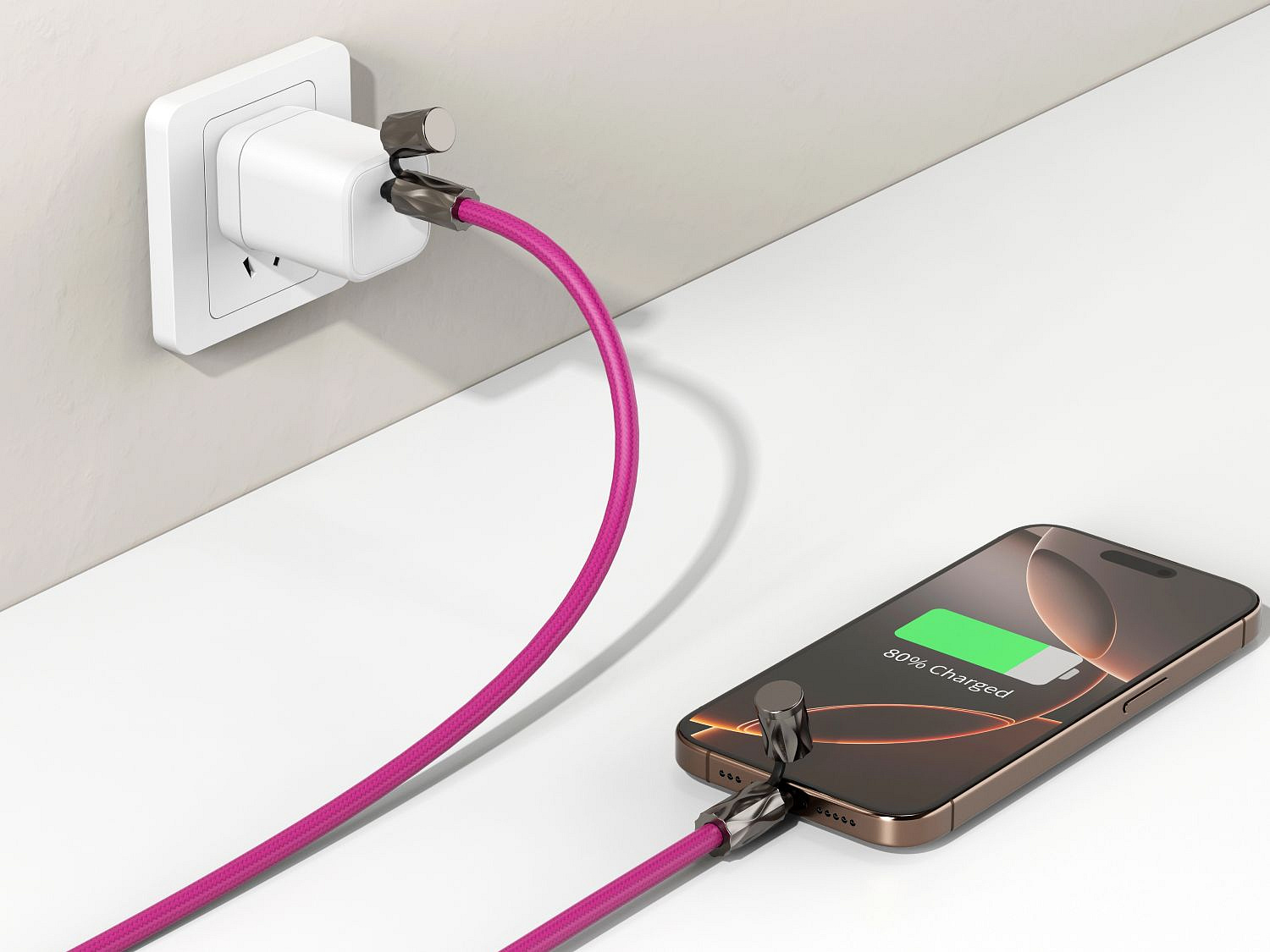 Tento popruh v sobě skrývá zabudovaný USB-C kabel s podporou rychlého nabíjení až 240W (PD), takže máte nabíjecí kabel vždy po ruce, aniž by zavazoval. Prémiové a designové zpracování kovových prvků ze zinkové slitiny a opletené šňůry o průměru 6 mm zajišťuje odolnost i elegantní vzhled.