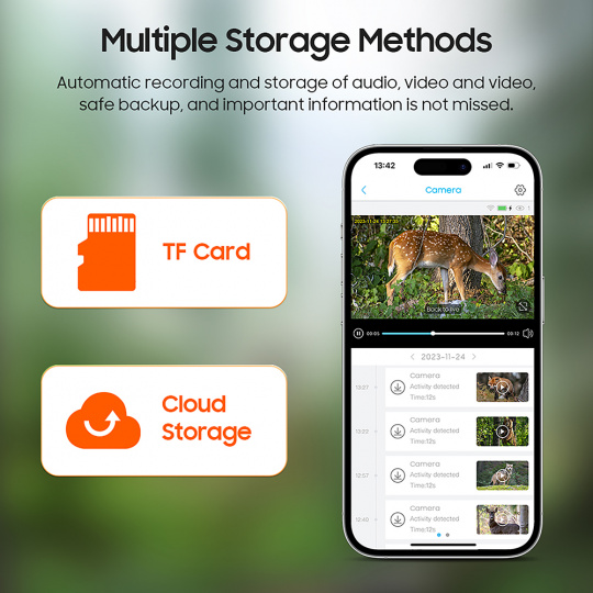 •Úložiště na dosah: Podpora micro SD karty až 128 GB nebo volitelné cloudové úložiště vám poskytne dostatek prostoru pro všechny záznamy.