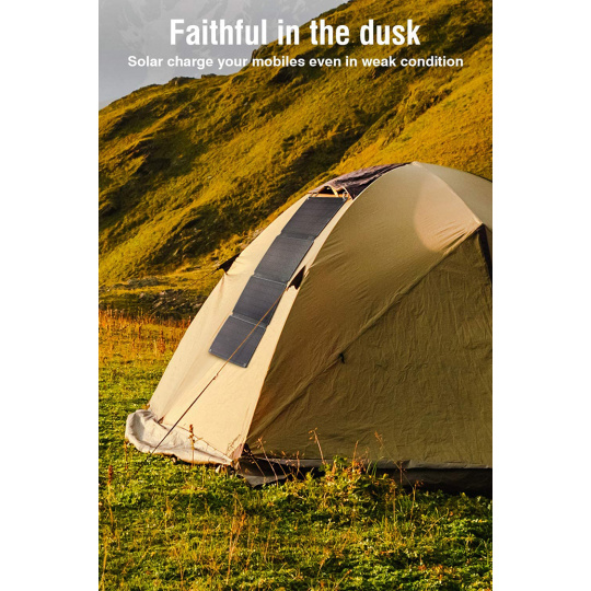 Přichyťte jej během cesty, pomocí hliníkových karabin, na váš batoh, kolo, stan a můžete nabíjet powerbanku, čelovku, fotoaparát, kameru, baterku a jakoukoliv další drobnou elektroniku na vašich výletech, cestách, chalupě, u vody, nebo v kempu.