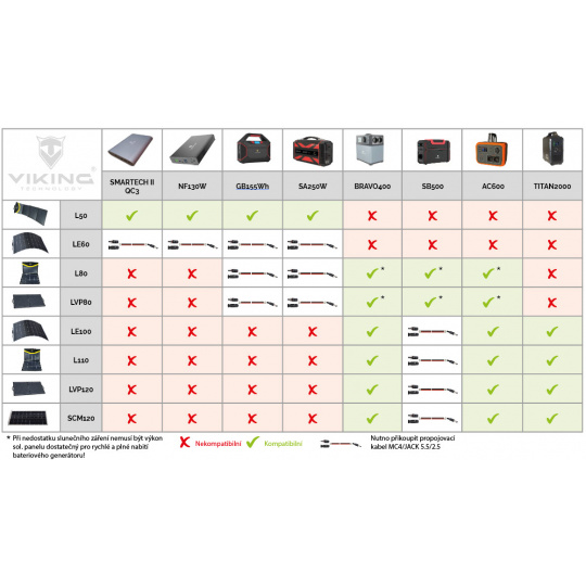 Vhodné také pro solární nabíjení bateriových generátorů značky VIKING