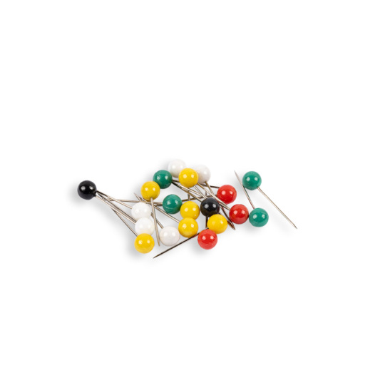 Špendlíky s kovovým hrotem a kulatou barevnou hlavičkou jsou vhodné pro přichycení dokumentů na korkové i textilní nástěnky.