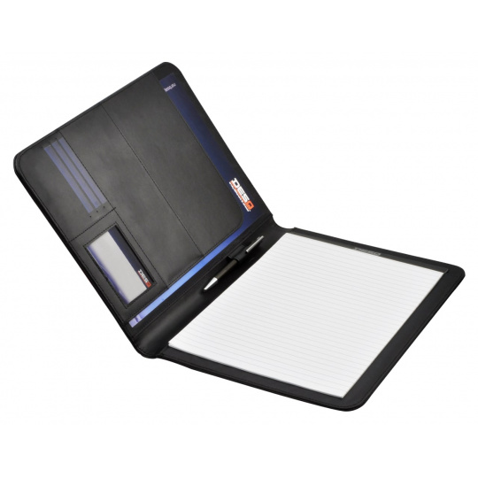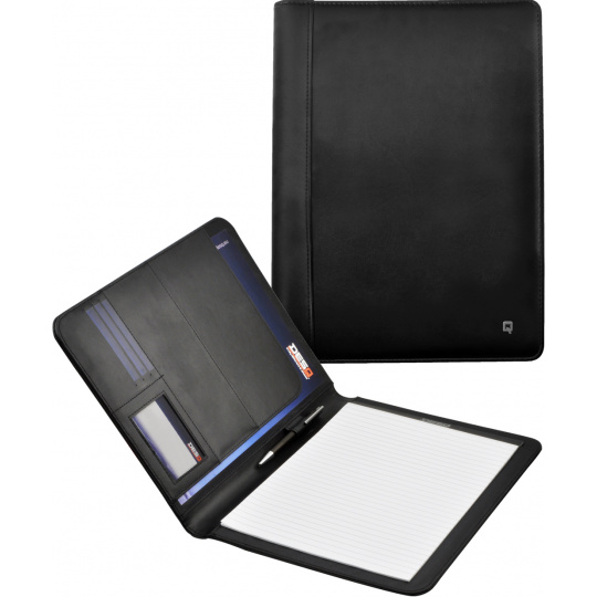 - Spisovka A4 z umělé kůže - 1 kapsa na dokumenty A4 - 1 kapsa na dokumenty A5 - 5 kapes na karty nebo vizitky - 1 poutko na pero - Obsahuje poznámkový blok A4 (20 listů) - Barva: černá - Rozměr 325 x 256 x 20 mm