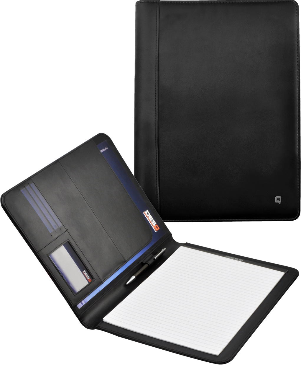 - Spisovka A4 z umělé kůže - 1 kapsa na dokumenty A4 - 1 kapsa na dokumenty A5 - 5 kapes na karty nebo vizitky - 1 poutko na pero - Obsahuje poznámkový blok A4 (20 listů) - Barva: černá - Rozměr 325 x 256 x 20 mm