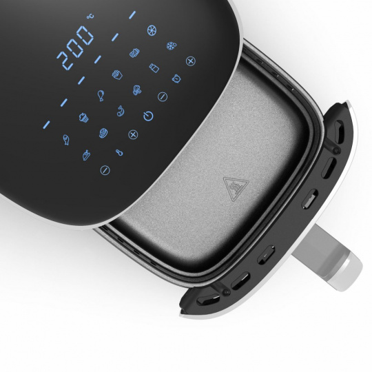 • 12 přednastavených programů: Ryby & Muffiny & Kuřecí stehna & Hranolky & Sušené maso & Sušené houby, ovoce a zelenina & Kuře & Steak & Krevety & Zelenina & Jogurt & Rozmrazování